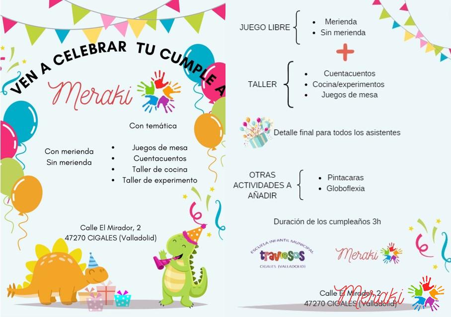 Tenemos dos tipos de cumpleaños, con merienda y taller o sin merienda y con taller.